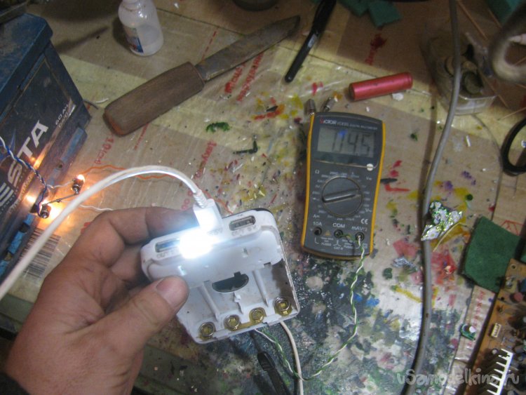 Ну что ж, если лампочки выбрать пожирнее, ватт по 6, можно вполне смело заряжать PowerBank, а уже с него раздавать безопасно зарядку на телефон и так далее. Также можно напрямую подзарядить аккумулятор телефона в экстренной ситуации.