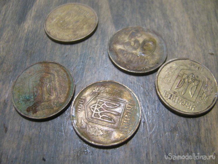 Источником меди у меня выступили монетки, монеты нужно выбирать именно из желтого металла, современные делают уже из железяк, а сверху только делают напыление. Хотя, может и с напылением сработает.