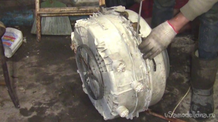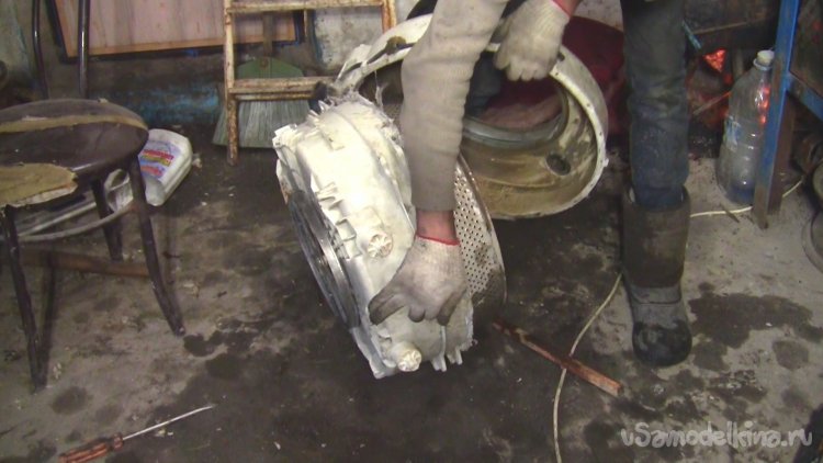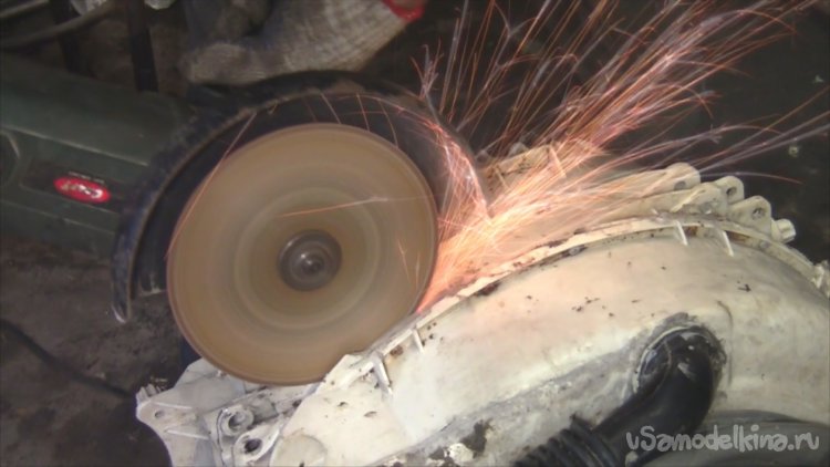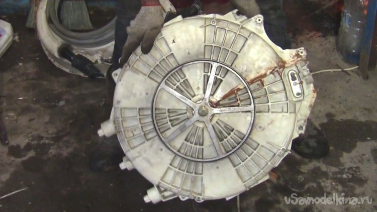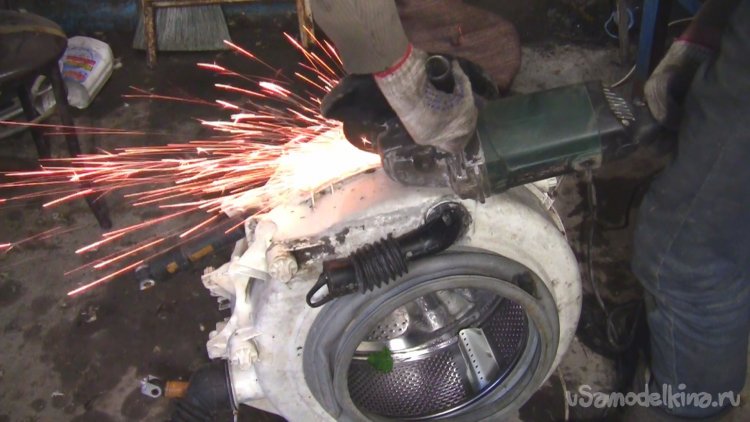 Для начала с барабана нужно удалить весь пластик, он закреплен на болты и гайки, т.к. они сильно заржавели и открутить их практически невозможно, принял решение разобрать при помощи болгарки.