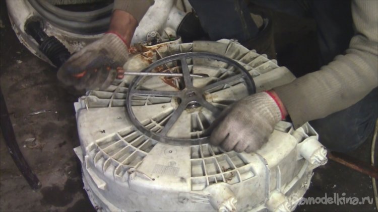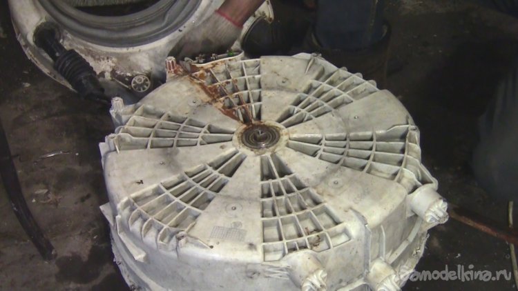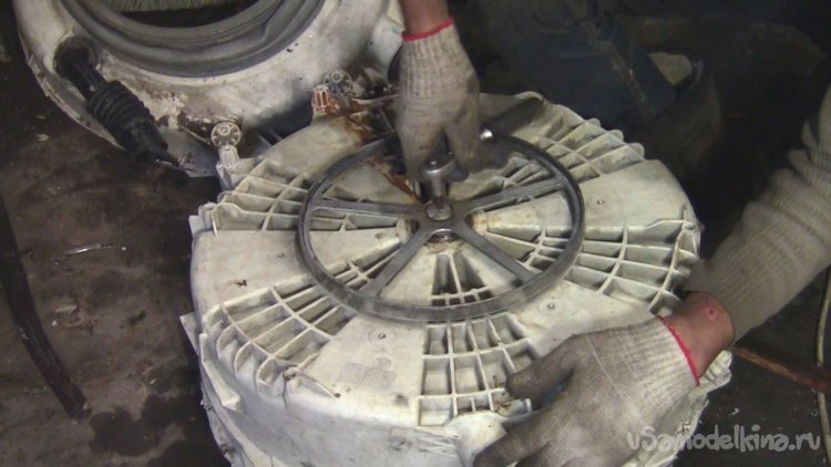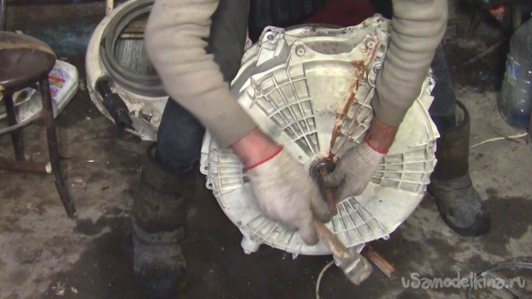 Ну а теперь при помощи молотка и наставки выбиваю барабан с подшипников.