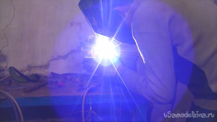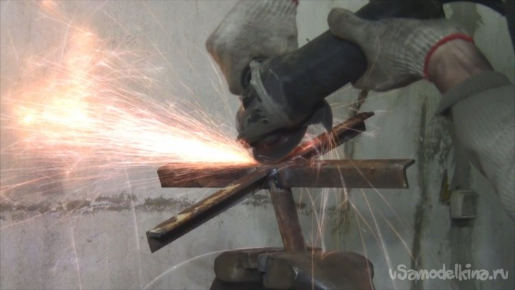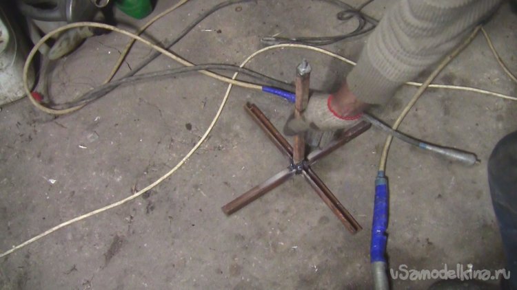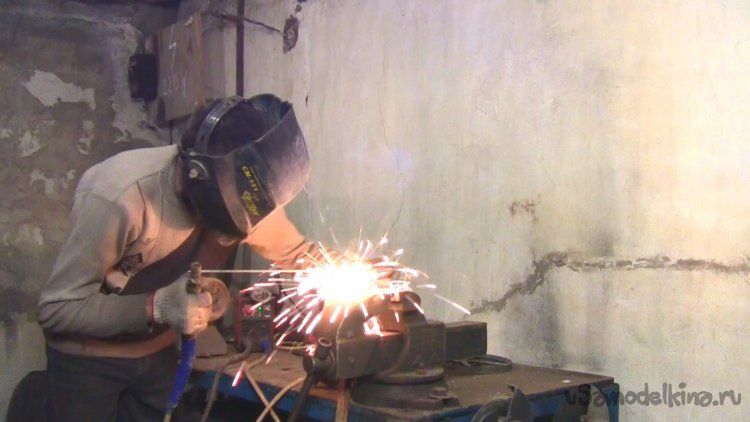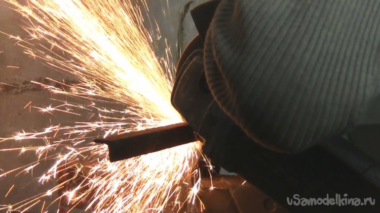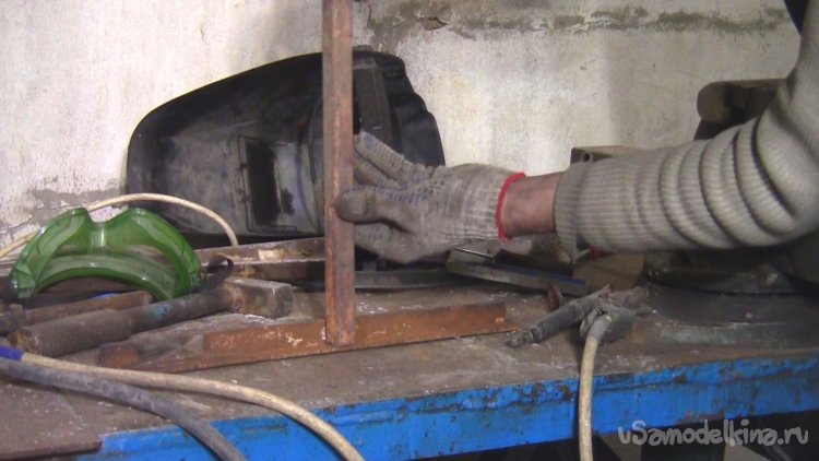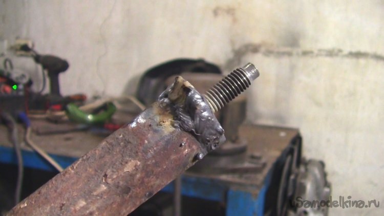 Барабан пока-что откладываю в сторону, приступаю к изготовлению ножек. Для этого я взял профильную трубу 25x25 и уголок 25x25. К торцу профильной трубы нужно ровно приварить болт М6, при помощи которого был закреплен шкив.