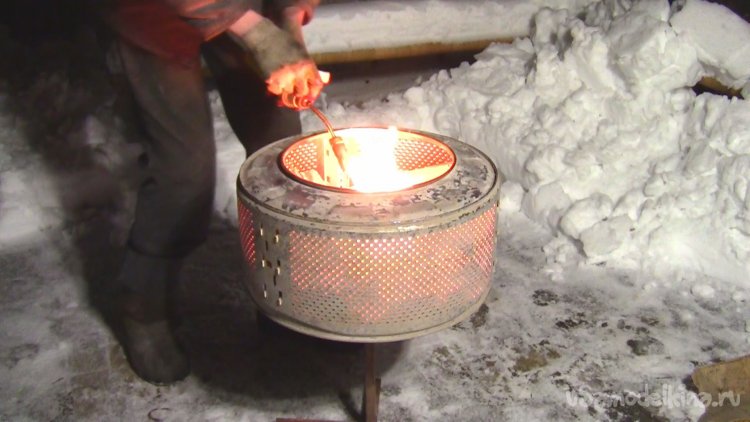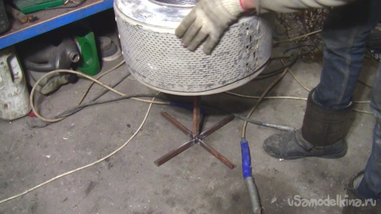 Для изготовления понадобится: Барабан от стиралки, профильная труба, уголок, сварка, болгарка, ну и 1 час свободного времени.