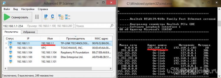 Здесь 192.168.1.1 – IP роутера, eth0 – проводное подключение