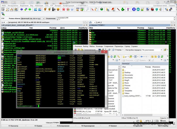 Консоль Putty, файловый менеджер WinSCP и Total Commander – естественно, он тоже умеет это.