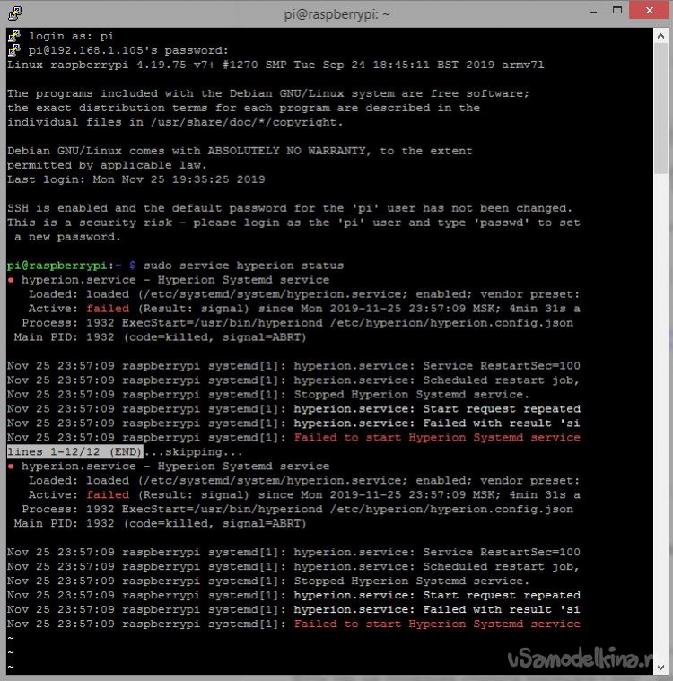 Теперь при перезапуске Raspberry Pi автоматом стартует демон hyperion