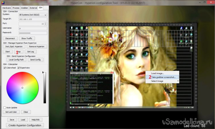 sudo hyperion-v4l2 -d /dev/video0 --video-standard "no-change" --pixel-format "yuyv" –screenshotИ теперь в HyperCon вместо ошибки получаю вполне сносный скриншот, который буду подгонять)