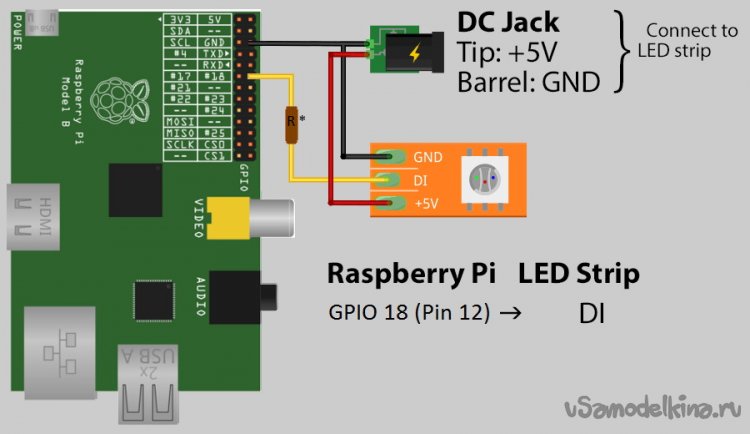 5. В текущей версии для управления WS281x не нужен посредник в виде ардуины со скетчем. Поддерживается управление напрямую с выхода GPIO малины. И управляющий уровень сигнала 3,3В отлично вписывается в границы по даташитам на эти чипы.