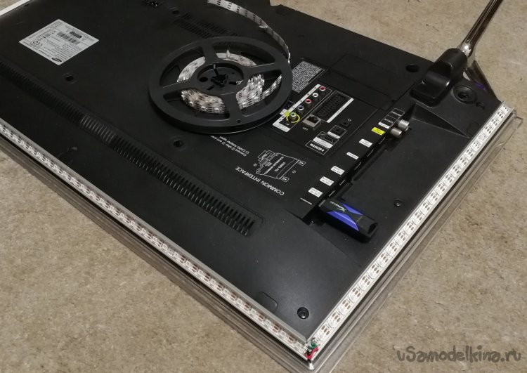 Остается сделать основу для фиксации ленты с чипами WS2812B на заднюю панель TV.
