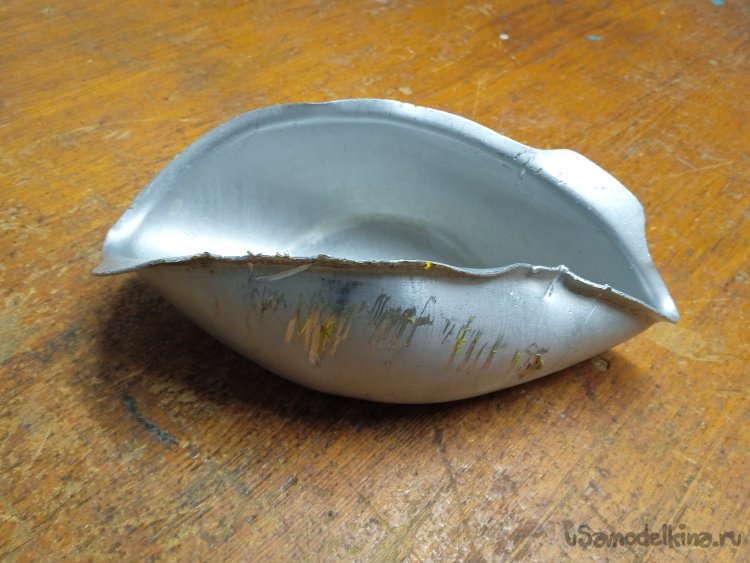 Но как только заготовка «высвободилась» из цельной конструкции миски, оказалось, что материал очень мягкий и не предназначен для удержания частей ковшика.