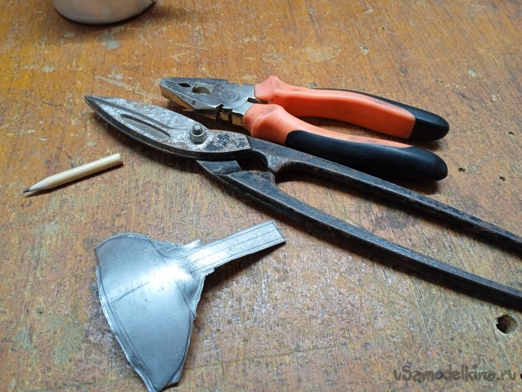 «Шлемка» была размечена, для заготовки фланца и вырезана с запасом ножницами по металлу.