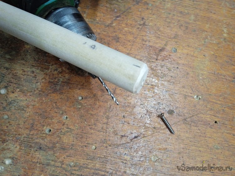 Наконец то, собрал все воедино. На торец нашелся саморез из нержавейки, а на крепление ручки снизу к кронштейну, подошел вороненый саморез, с головкой под шестигранник («зашел» в березу с натягом). Все «Джобиздон!» Конструкция получилась довольно крепкая.