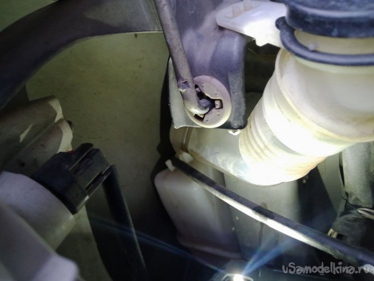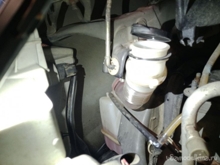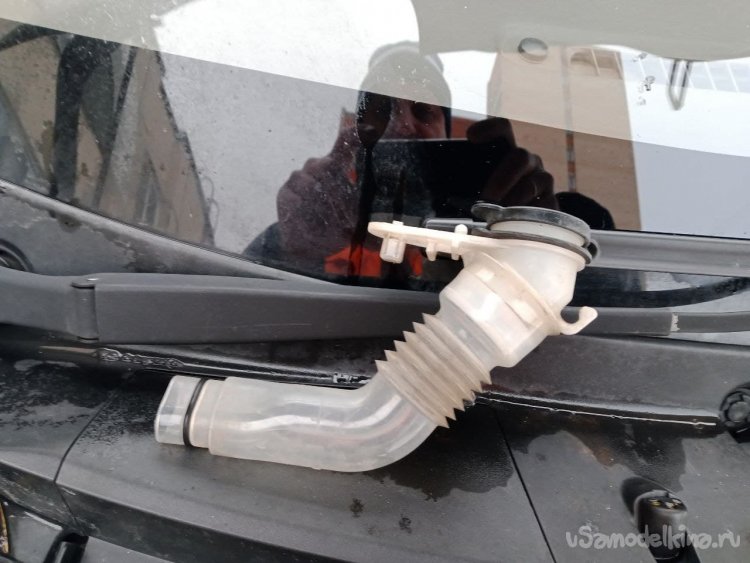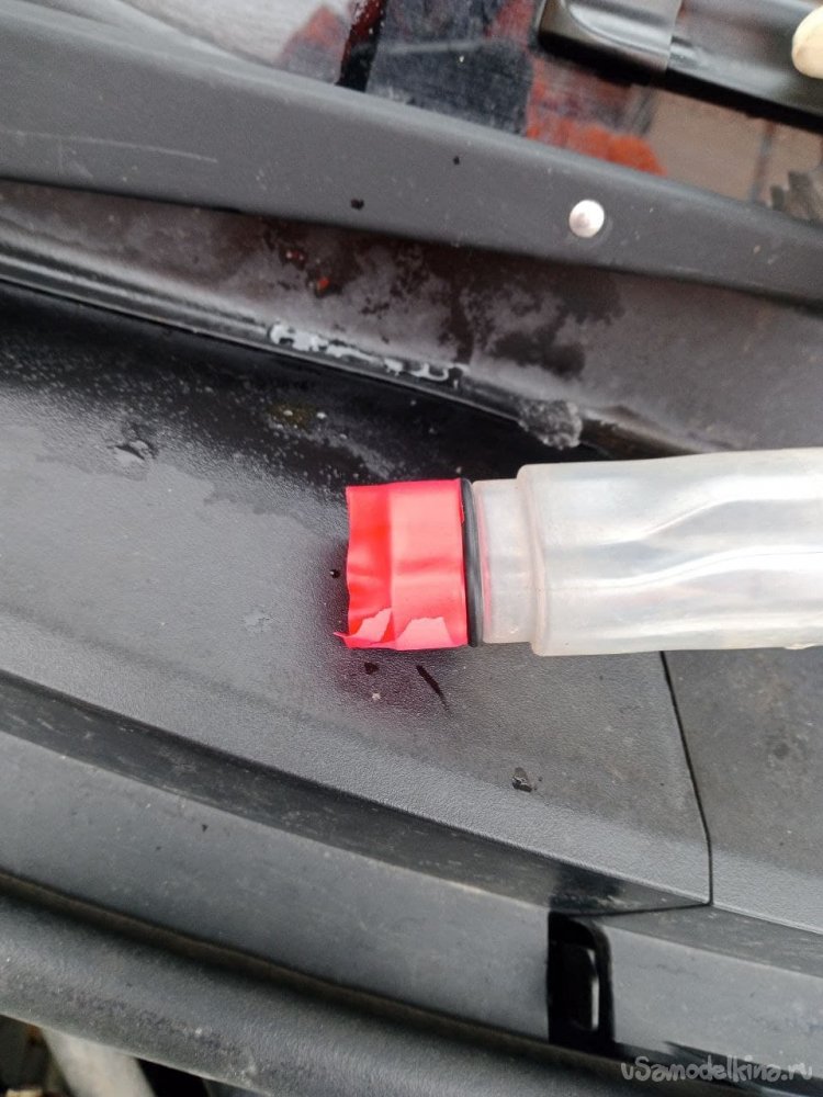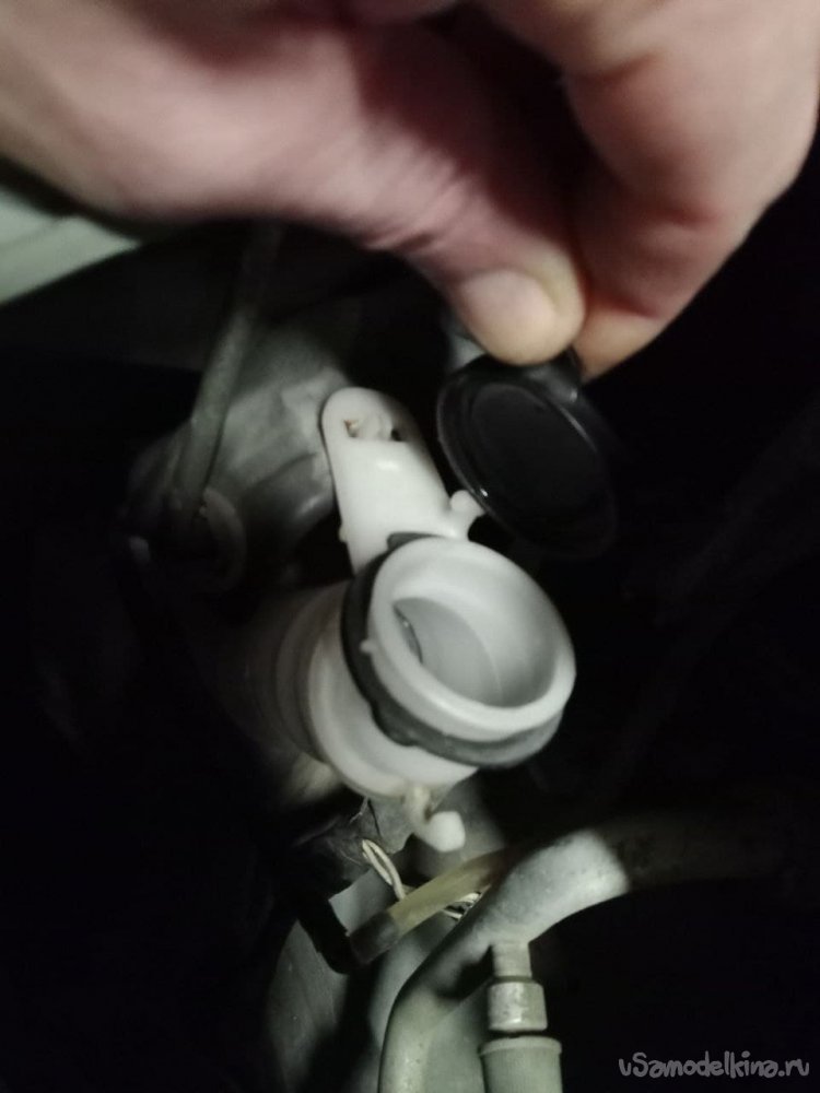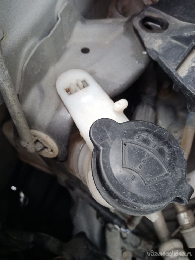Кроме того, бачок по объёму маленький, навскидку около 1 литра, поэтому доливать жижу приходится часто. И вот жена пожаловалась, что при заливке жижи под машиной лужа из омывайки, а в литровый бачок входит 1,5 литра жидкости. Сначала я списал всё на кривые ручки, но решил проверить сам. Да, всё верно, в месте сочленения бачка и заливной горловины щель, в которую половина тупо проливалась. По замыслу конструкторов, видимо, вставив одну пластмассовую деталь в другую, достаточно резинки, и соединение будет герметичным. Фигушки! То ли они не додумали, то ли в процессе жизни всё поменялось, однако резинка не входит плотно в нужное место. Будем исправлять. Как постоянный посетитель всех возможных форумов и чатов где только можно по кей-карам, могу сказать, что эта проблема системная, и присуща почти всем машинкам такого класса.
