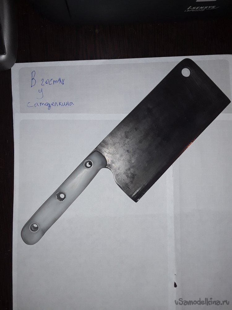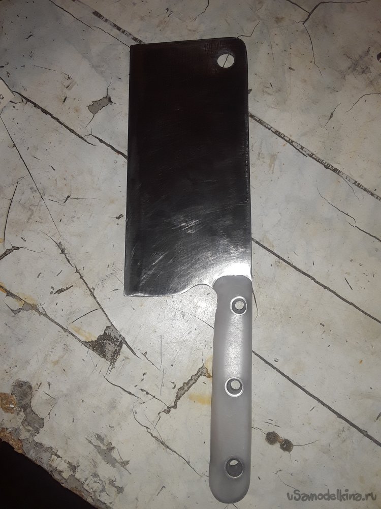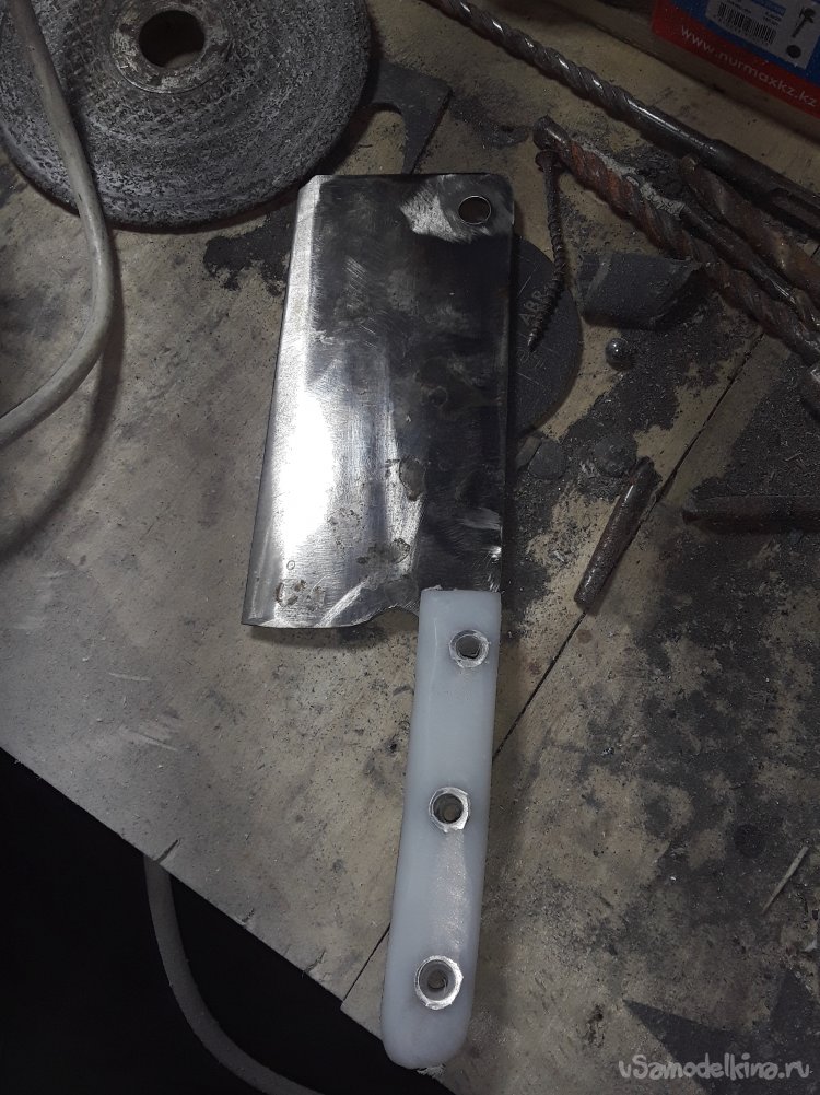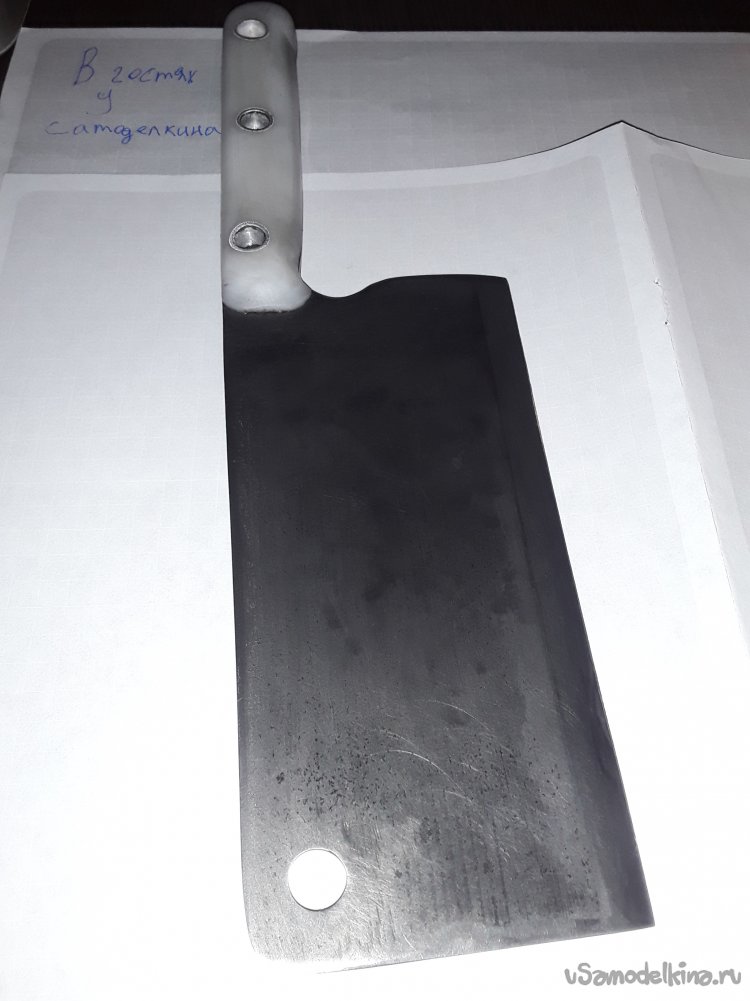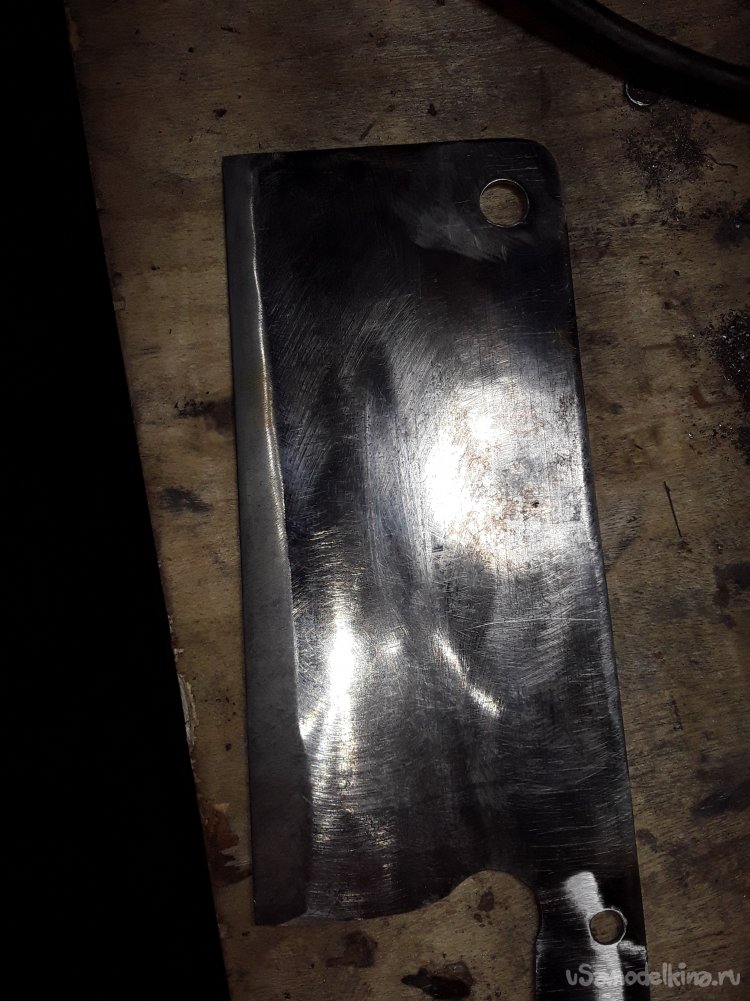 Ну вот и все нож готов в этот же вечер немного поработал им очень удобная штука для кухни и нож и топор, а самое главное это что очень вкусный рез аж приятно им работать. Конечно сильно по костям рубить нельзя, но если аккуратно то иногда можно. Способ травления не раз выручал такой обработанный, метал может заржаветь, но не так как просто без обработки да и держать нож в мокром состояние думаю догадается не каждый. Всем спасибо за проведённое время во время чтения моей статьи всем мира и благ в дом и до новых самоделок Друзья!!!!