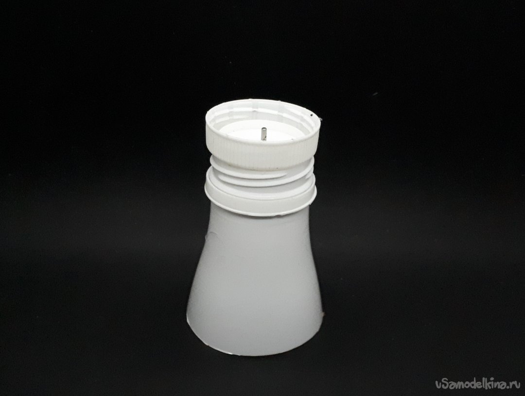 3. Аккуратно подравниваем ножницами срез верха бутылки, чтобы на ровной поверхности конструкция не шаталась, на фото промежуточный результат.