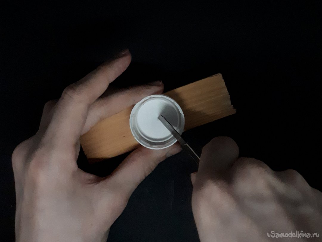 1. Берём крышку, и ножиком примерно отмечаем центр (особая точность не важна),
