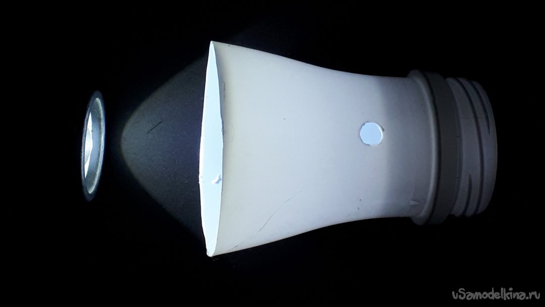 1. Запихиваем всю электронику в основу, через ту сторону, где резьба, и вставляем выключатель в отверстие для него.