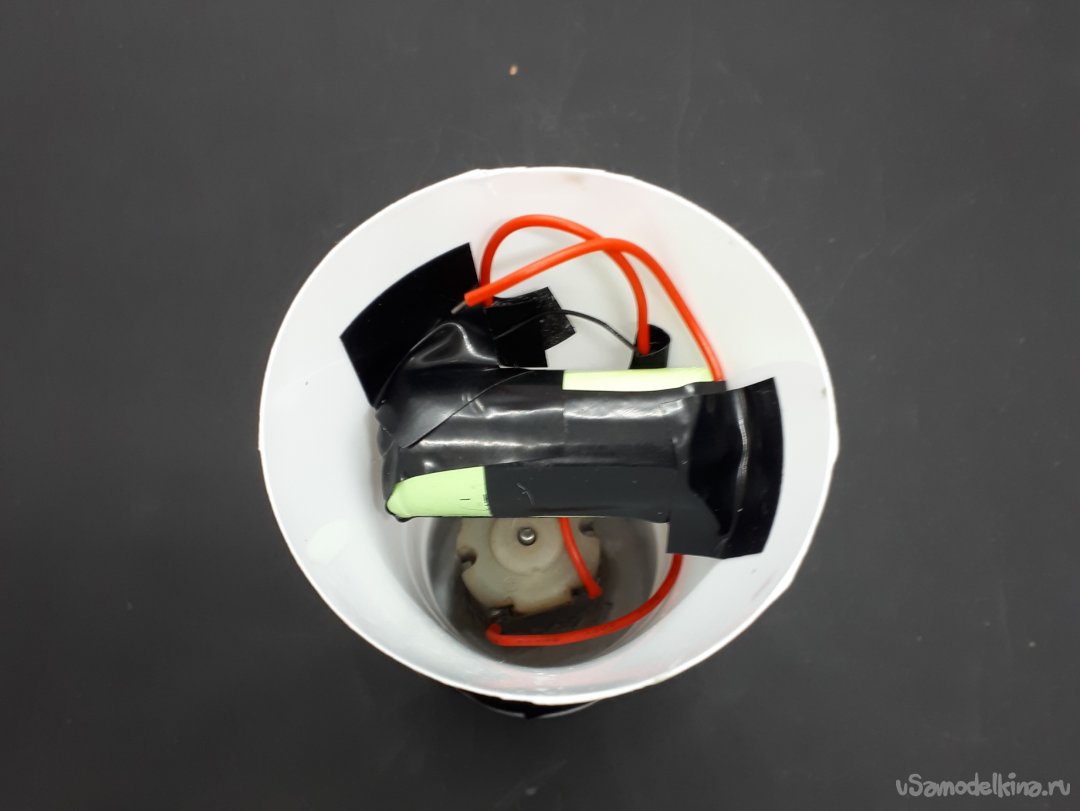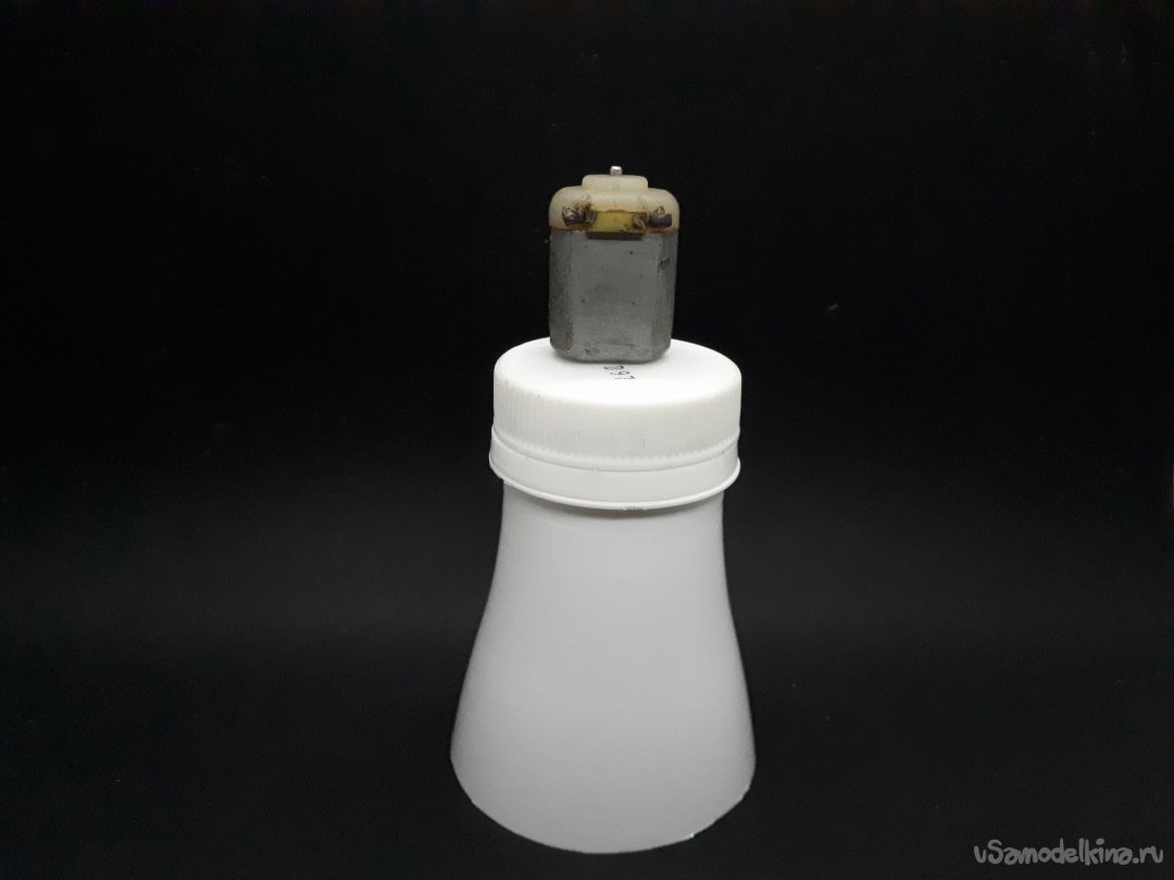 4. Накручиваем крышку на основу и вставляем мотор в дырку