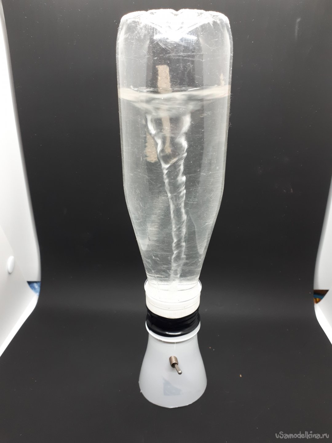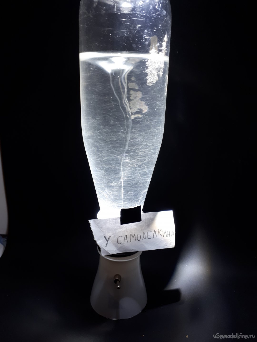 Всем привет, в этой статье я покажу с подробностями и норм фото, как сделать электрический водоворот(торнадо) в бутылке. Водоворот будет образовываться за счёт того, что мотор будет раскручивать воду, и под действием центробежных сил вода прижимается к стенкам бутылки, образуя воронку.