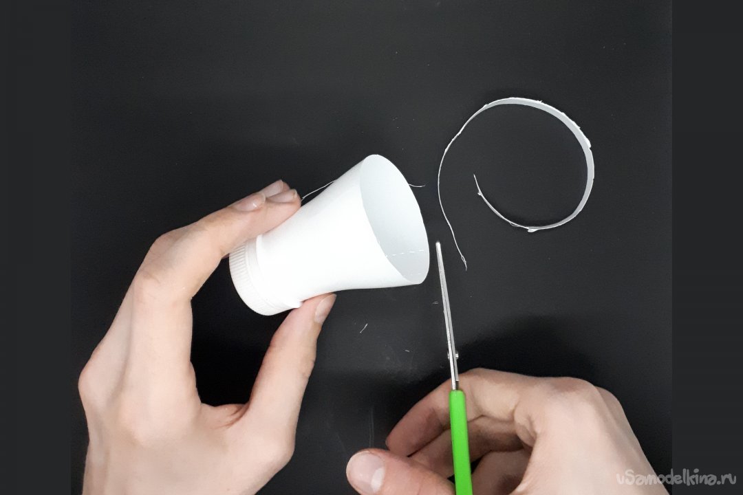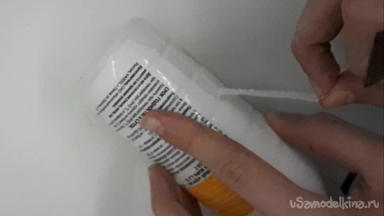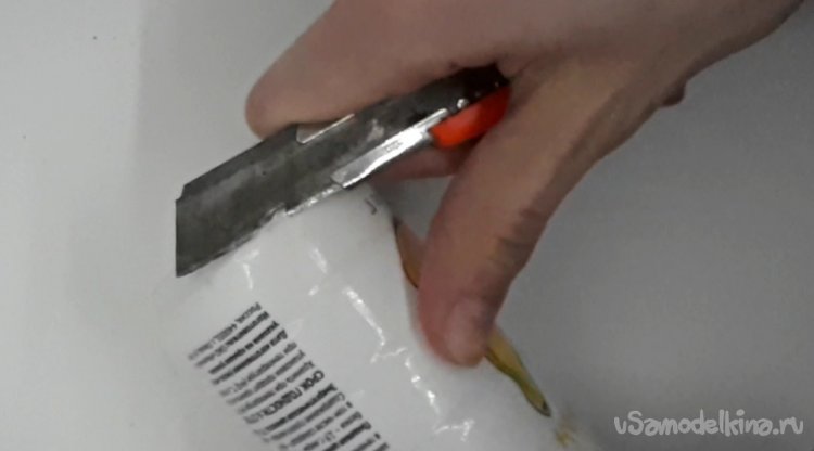 1. Сначала в месте с утолщением этикетки подрезаем ножиком;