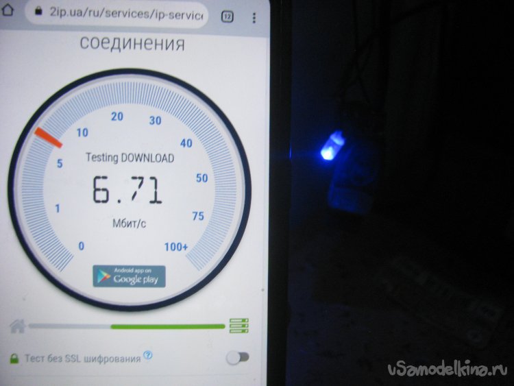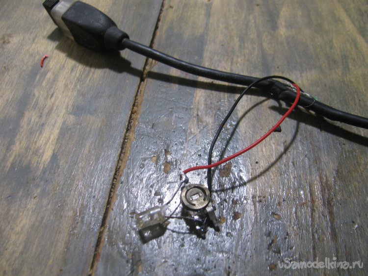 Когда светик мигает - ток слишком низкий, мышка не включается. Потихоньку вращая резистор, доходим до отметки включения мышки, светик при этом светится стабильно, немного мерцая. В таком режиме мышь работает стабильно, нагрева у резистора и светика нету. Как только начинаешь двигать мышкой, светик светится ярче, то есть, передатчик потребляет больше тока.