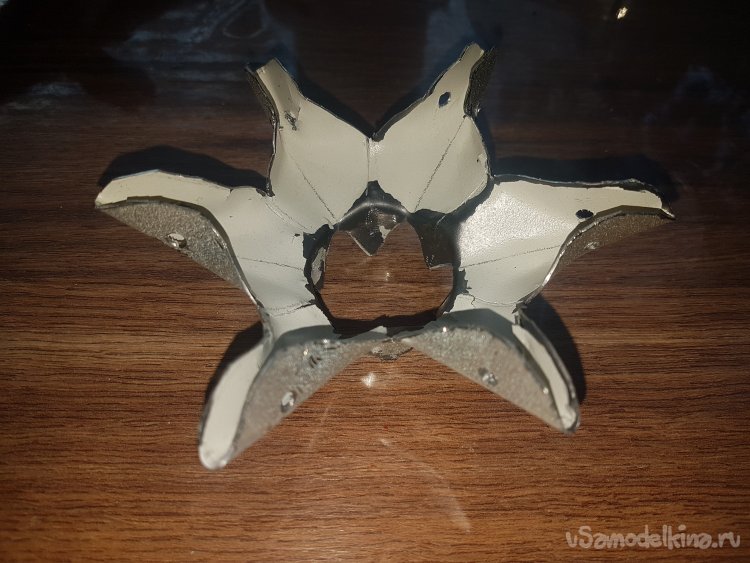 Елка куплена лет 10 назад. От времени стал разрушаться пластик крепления веток. Много искал варианты ремонта, но так ничего приемлемого в интернете найти не смог. При осмотре своей ёлки, состоящий из трёх частей обнаружил, что на средней части пять крепежей, а на нижней 3 крепежа для веток. При том, самый нижний крепеж, на котором держатся нижние, более крупные и тяжелые ветки, изготовлен не как все из пластика, а из металла. Решил пойти таким же путем и изготовить в замен пластиковых, крепежи из металла. Металл листовой долго не искал, можно взять оцинковку, я взял старый корпус от компьютера и его хватило на 7 крепежей. С помощью ножниц по металлу вырезал заготовки, зубилом в центре прорубил и плоскогубцами выгнул круглое отверстие диаметром под трубу "ствола". Дальше теми же плоскогубцами сформировал опоры для веток, просверлил сквозные отверстия для фиксации веток. Насадил крепежи на ствол, закрепил на равном расстоянии саморезами. Покрасил. Дальнейшее описывать не интересно, просто собрал ёлку, закрепив ветки проволокой. Ёлка восстановлена, ветки крепко держатся в новых крепежах как на шарнирах, т.е. когда устанавливаю ёлку, ветви лежат в лапках крепежей, а когда складываю для хранения, при переворачивании, ветки под своим весом складываются к стволу.