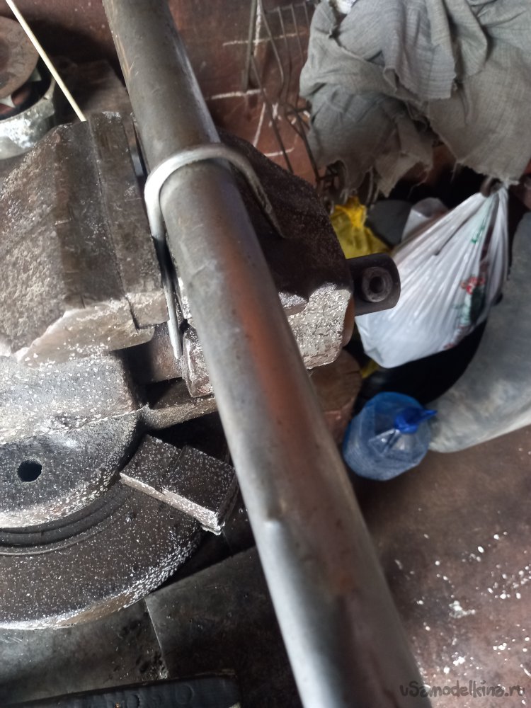 4. Затем зажав будущий крюк в тиски огибаем его вокруг какой-нибудь оправки