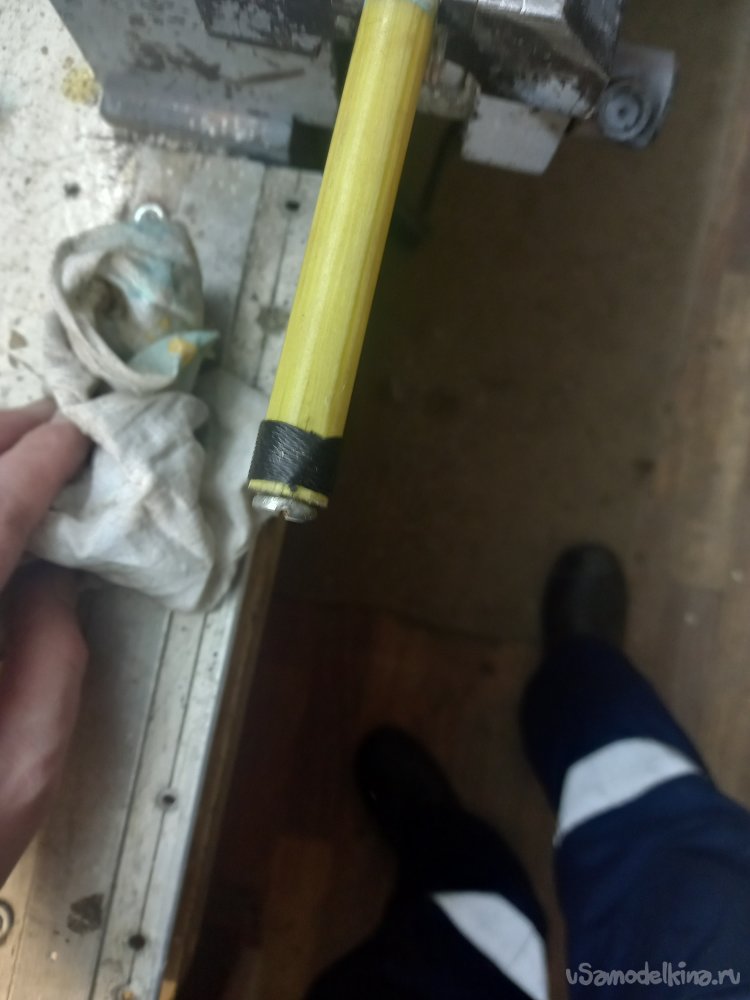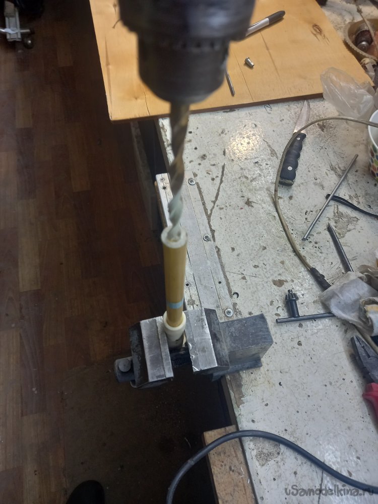 2. Так как гайка от врезного замка имеет диаметр 8мм. надо рассверлить отверстие в будущей рукояти с 6мм до 8мм