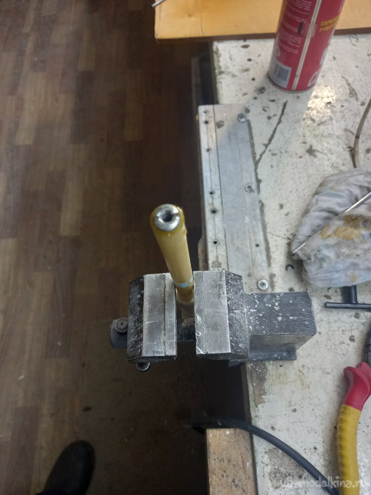 3. Далее вклеиваем эпоксидным клеем гайку в отверстие рукояти