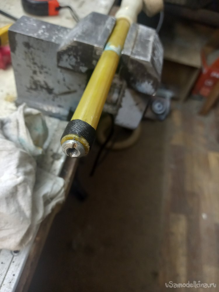 4. Для усиления плотно обматываем капроновой нитью с пропитыванием клеем