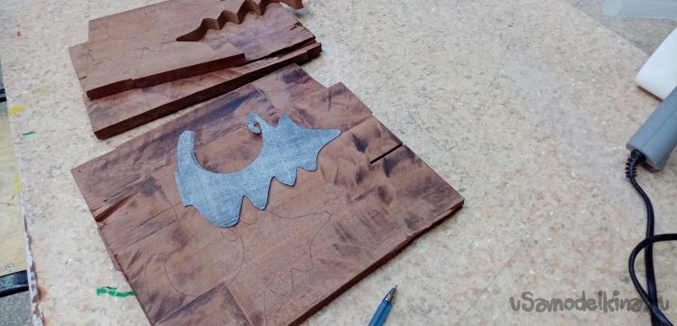 Нашел кусочек дерева немного покрасивее. Стандартная процедура изготовления. Обвожу рисунок, выпиливаю. Готов второй образец.