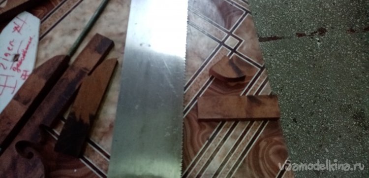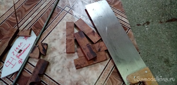 Затем размечаю полоски на отдельные бруски, распиливаю ножовкой с мелким зубом.