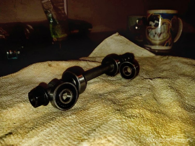 Если подшипники встали на свое место, то собираем ось (главное правильно затянуть все гайки, иначе накат будет намного хуже).