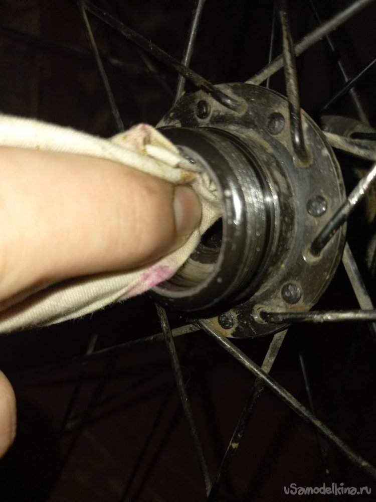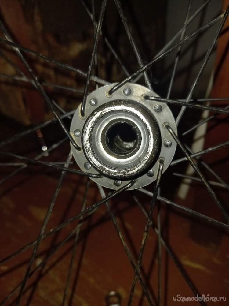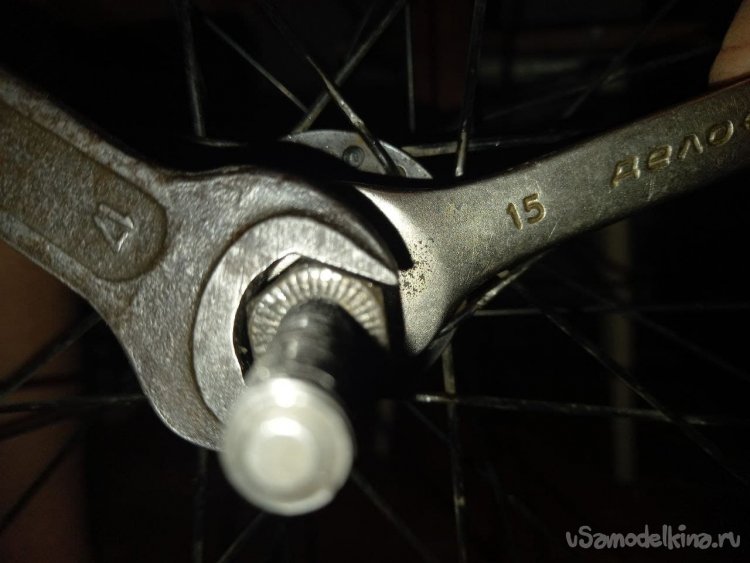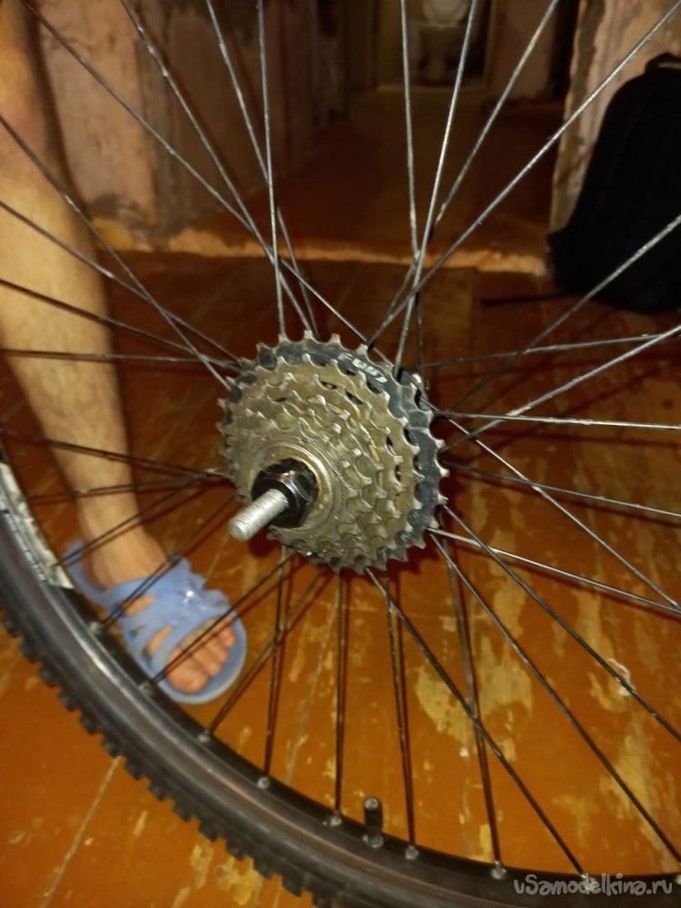 Для начала разберем колесо (снимем его с велосипеда, трещотку, и ось). И рассмотрим внимательно, как у оси дела.