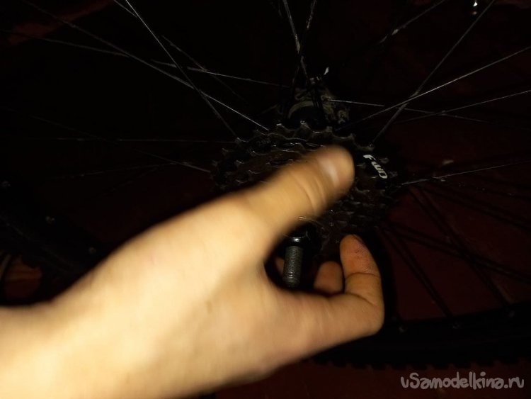 Дальше ставим трещотку (особо сильно можно не затягивать, само затянется), и прикручиваем колесо на место. И все можно кататься дальше.