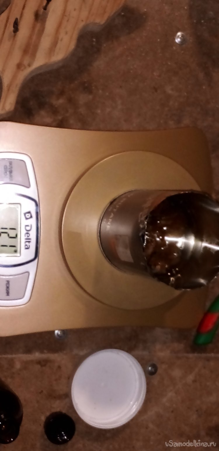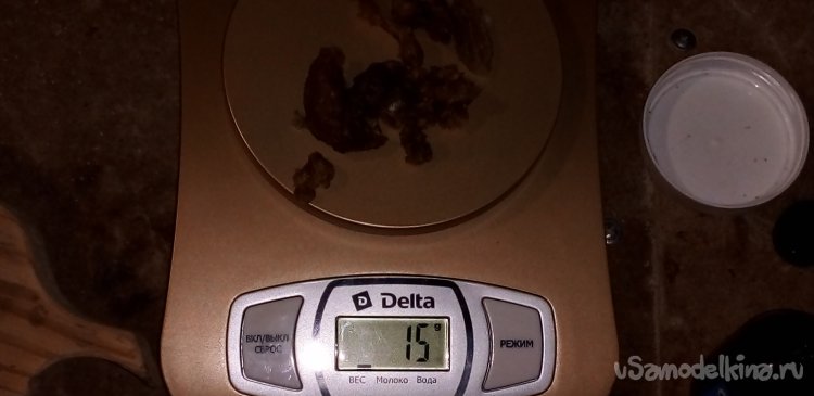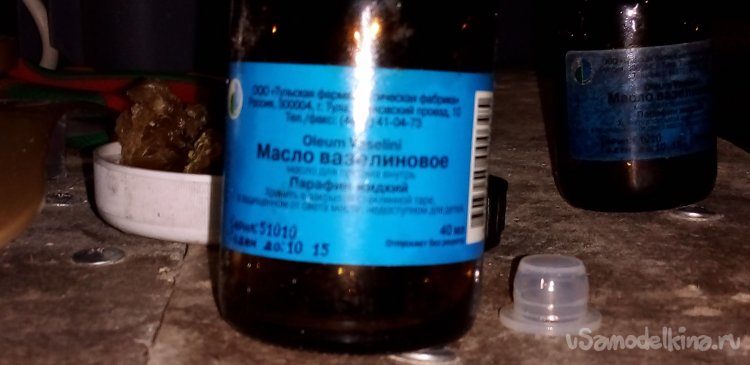 Для его создания нам нужно одна часть воска пчелиного и 4 части парафина жидкого (на картинках парафина 60гр, остальное это масса тары, воска 15гр)