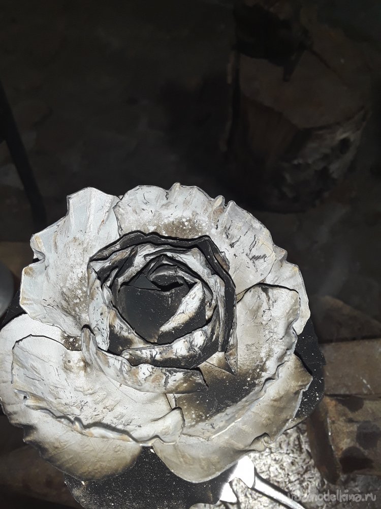 Здравствуйте сегодня в этой короткой статье я хочу вам рассказать про изготовления розы из листового металла. Розу попросил сделать знакомый для кованого цветника там целая композиция кованых деталей. Как то я уже делал розу, но я делал ее из листа металла 1.5мм и даже 2 мм мне очень понравился результат, но работы там на часа 3. Эту же розу я буду делать из того что мне дали, а это лист металла 0.95 мм. Такую розу можно собрать на коленки так как металл греется быстро и работаешь не молотком, а плоскогубцами. Самое нудное это подготовка металла, а сама сборка 5 минут. Предисловие сказал теперь приступаю к подготовкам нужных деталей.