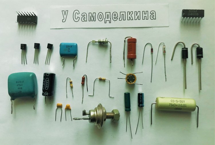 На рисунке 5 показаны все детали, используемые в СНО2. Выводы деталей перед монтажом рекомендуется предварительно зачистить чернильным ластиком, покрыть жидкой канифолью и облудить. Полупроводники лудят с применением теплоотвода – монтажного пинцета. Микросхемы DD1 и DD2 следует оберегать от пробоя статическим электричеством. Для этого они устанавливается в стандартную или «самодельную» панельку DIP14. Формовать выводы деталей рекомендуется монтажным пинцетом.