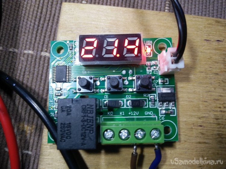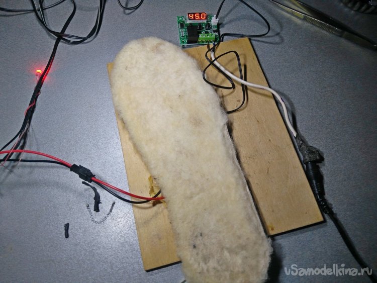 Температура прогрева таких стелек достигает примерно 45-55℃. Практические испытания в зимний период показали, что этого больше, чем достаточно. Через какое-то время нагрев приходилось выключать. В ходе испытаний я попробовал подключить термостат для поддержания определённой заданной температуры. Это также усложняет конструкцию, поэтому я посчитал, целесообразнее управлять нагрузкой вручную. Но в определённых условиях, если долго находиться на холоде, кому-то эта функция будет полезной. В таком случае стандартный китайский термостат можно доработать, убрав реле подключения нагрузки и установить вместо него ключ на полевом транзисторе, то есть твердотельное реле.