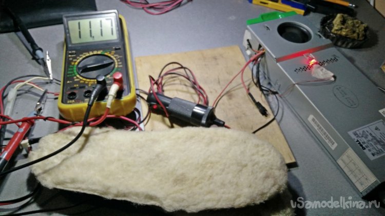 Кстати, пока машина прогревалась в зимнее время, это мне очень помогало. А когда уже начинало жечь, я переводил их нажатием кнопки на меньшую мощность нагрева. Приехав на работу или находясь в каком-нибудь постоянном месте - например, в офисе можно подключить стельки к маломощному блоку питания на ток, рассчитанный не менее 2 А. Для этого можно использовать тот же автомобильный штекер для прикуривателя. Или применить два отдельных провода: один автомобильный, другой - со стандартным разъемом (jack) на 5,5.