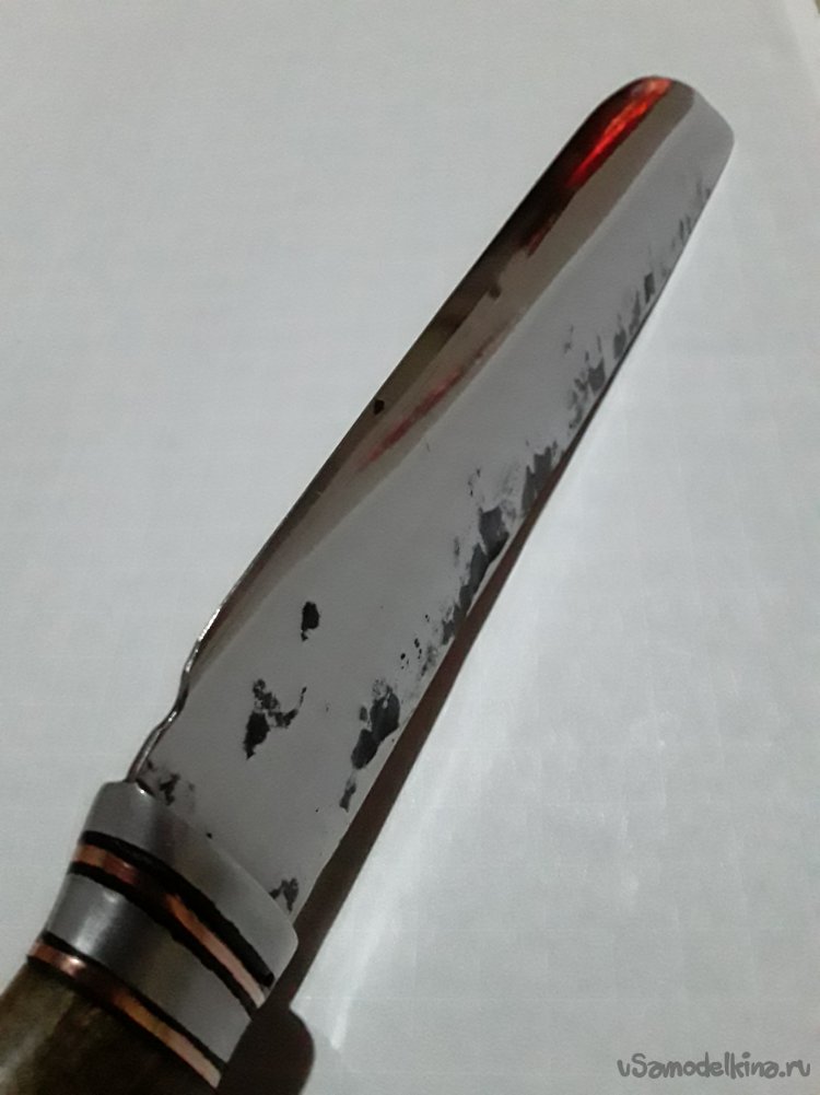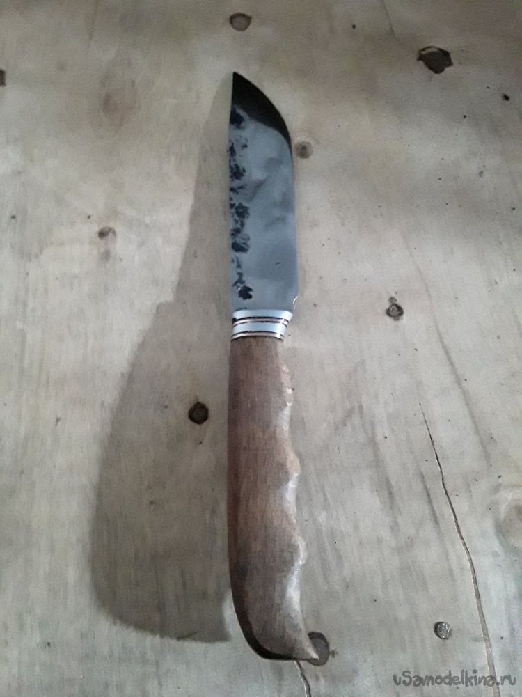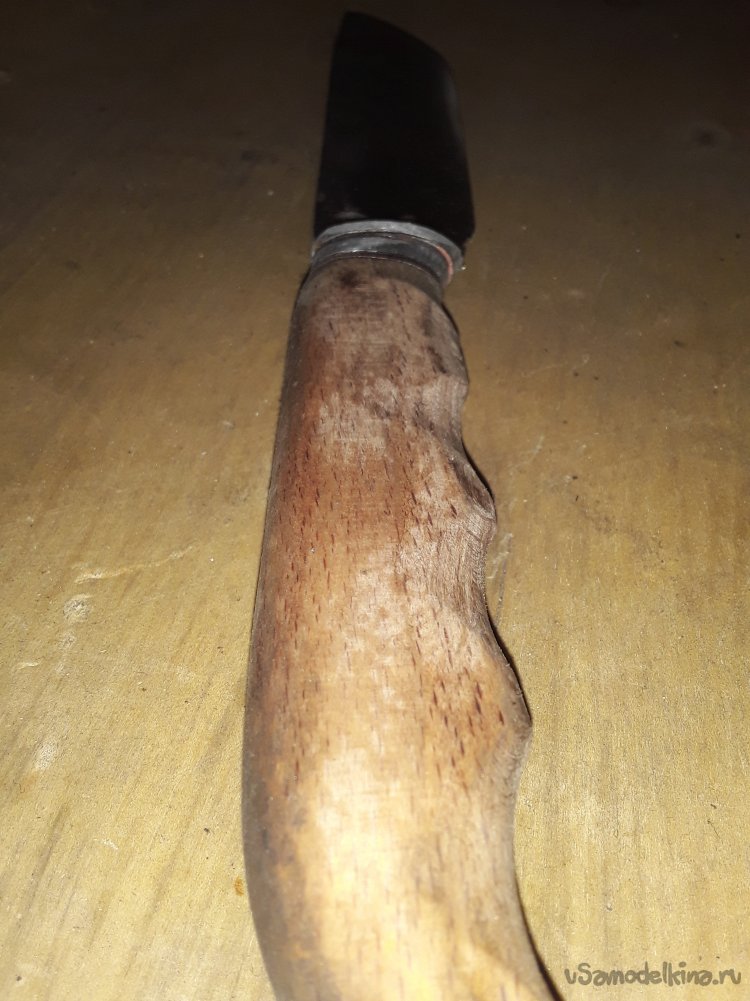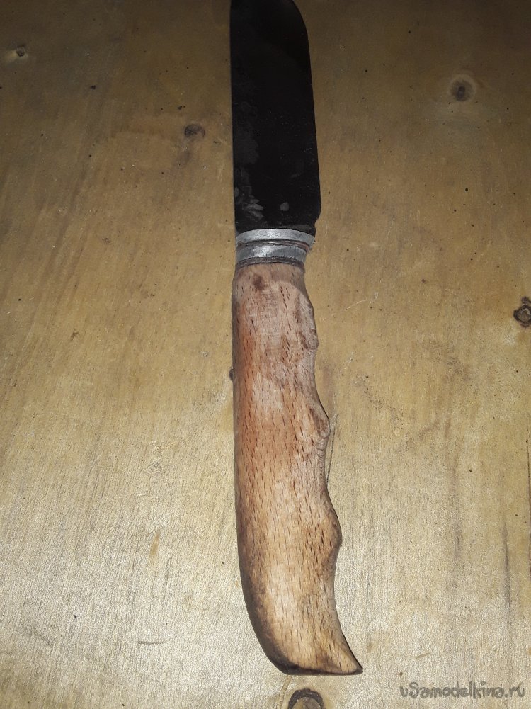 Ну как то так нож готов. Такой нож не будет ржаветь будет прочным и всегда острым конечно после заточки так как лезвие не любит твердое, но за то точится быстро, а как он режет аж приятно им пользоваться. Спасибо большое за проведенное время с моей статьей не судите строго всем мира и добра и до новых самоделок друзья.