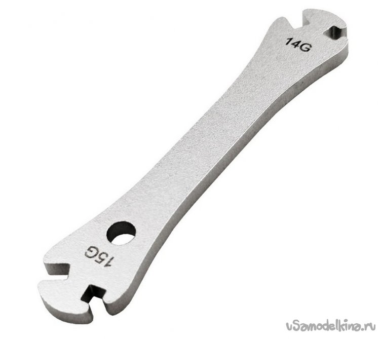 Существует несколько стандартов спиц, которые отличаются по диаметру (1, 8-2, 9мм), а также по размеру нипеля. Поэтому перед тем как приступить к изготовлению инструмента, нужно измерить штангенциркулем или микрометром толщину ниппеля спиц на вашем велосипеде.