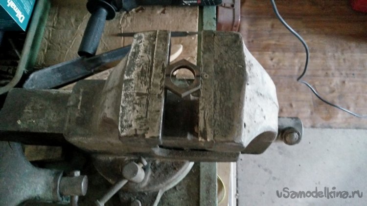 Далее гайку или трубу надо надежно закрепить в тисках таким образом, чтобы они не шатались. Крепить заготовку надо ниже обрабатываемой части детали с учётом того, чтобы не повредить тиски во время работы. Отрезной диск для УШМ желательно брать самый узкий, то есть миллиметровый. Потому что если вы работаете с болгаркой держа её в руках, от вибраций, могут быть неточности при резке.
