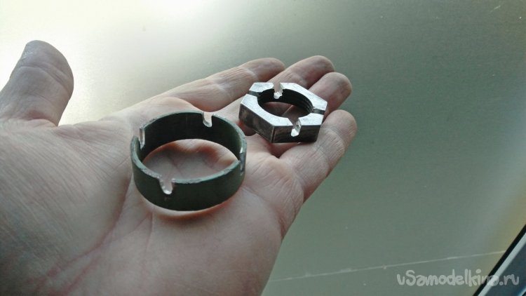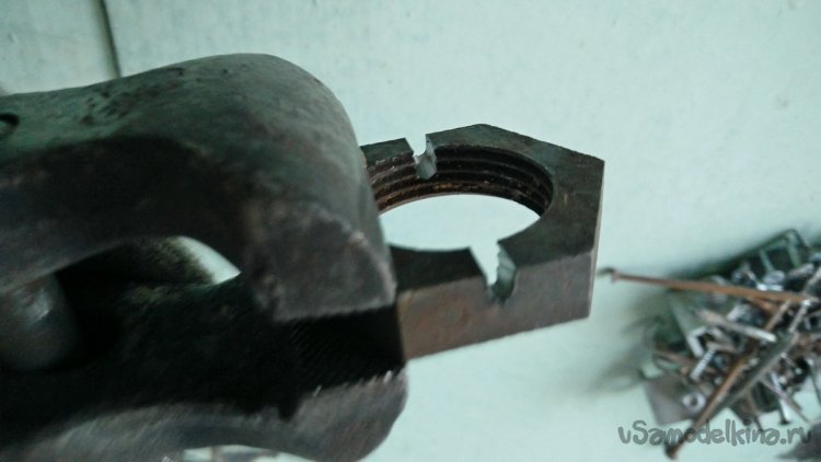 Стоит сказать, что металл, из которого я изготовил эти ключи, отличается своей твердостью. Поэтому, подбирая гайку для такой самоделки, нужно обратить внимание на отметки, нанесённые на ней. Гайка, изготовленная из легированной стали, будет иметь определённую маркировку. Определив визуально или опытным путём твёрдость металла, его можно дополнительно прокалить. Но это уже другая тема! )