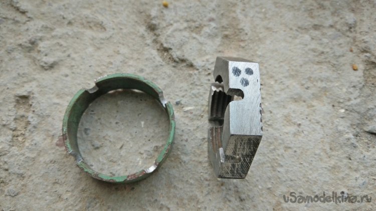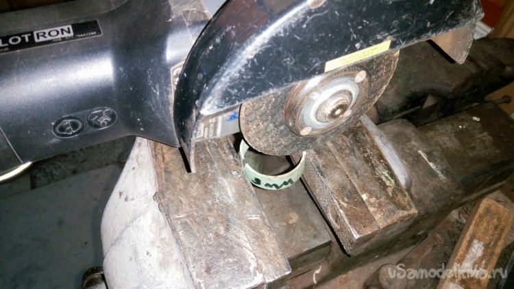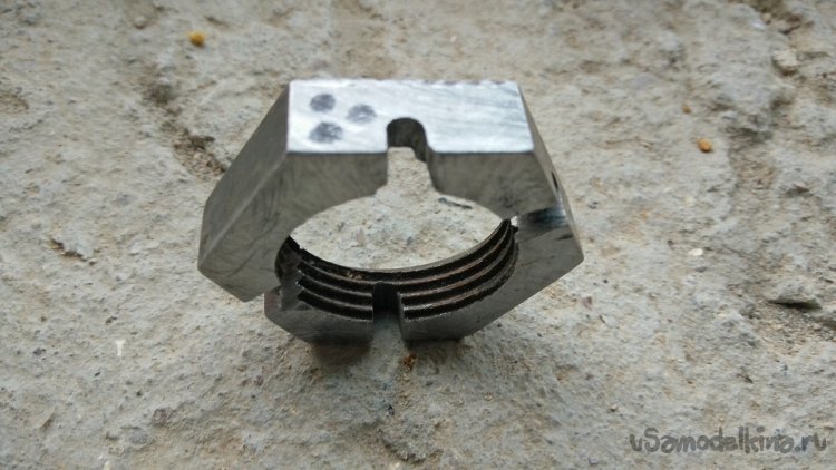 Сделав несколько срезов на гайке ту же операцию я повторяю на заготовке из трубы. Углубление паза нужно делать таким, чтобы он заходил полностью в ниппель, примерно на 4-5 мм.