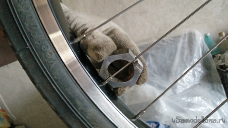 Попробовав на деле оба ключа, могу сказать, что цель, для которого этот инструмент предназначен, была достигнута. Но на практике мне больше понравилось работать с ключом из отрезка трубы. Он лучше садиться в руках, и его удобнее держать. Также он легче относительно громоздкой гайки, поэтому с ним меньше устают пальцы. Именно кольцевой ключ я применил при переспицовки обода колеса на 26 дюймов.