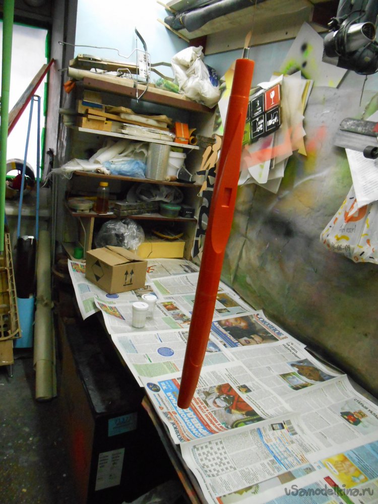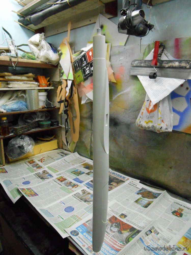 Затем секции соединены в общую конструкцию при помощи соединительной шпильки и склеены циакрином. Все зашлифовано шкурками различной зернистости с водой. Форма тщательно просушена и покрыта праймером для пластика из баллончика. После высыхания окрашена белой двухкомпонентной автоэмалью на 3 раза с промежуточной шлифовкой слоев. Весь процесс продолжался примерно три дня.