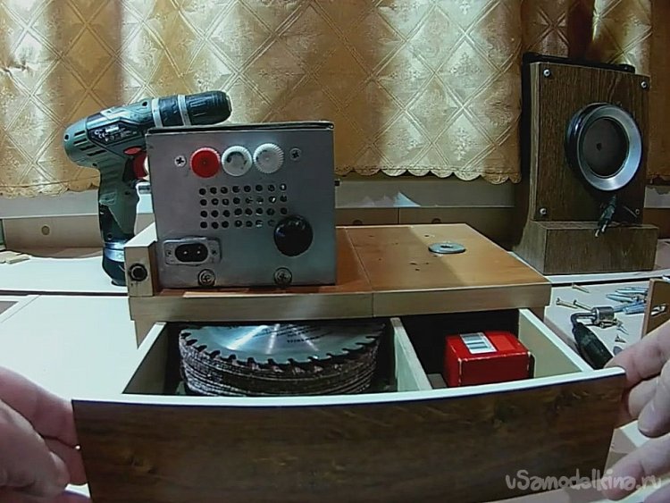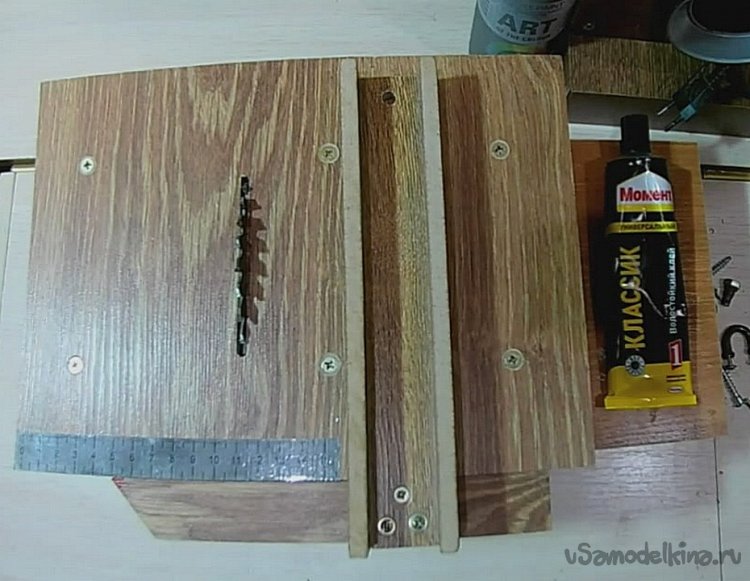 Этот ящик я так же сделал из остатков ламината и МДФ, он имеет два отделения.