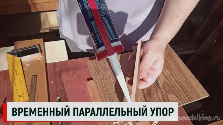 Сделал из ламината временный параллельный упор, позже доработаю конструкцию.