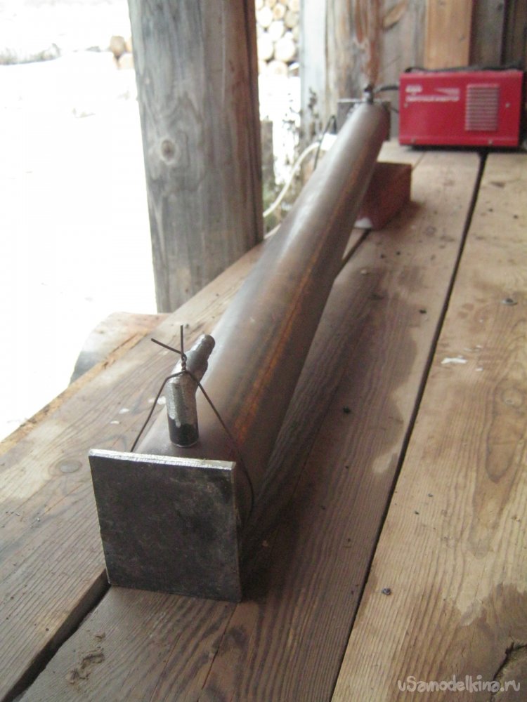 Приварил пластины-заглушки к трубе, вварил горловину в крышку.