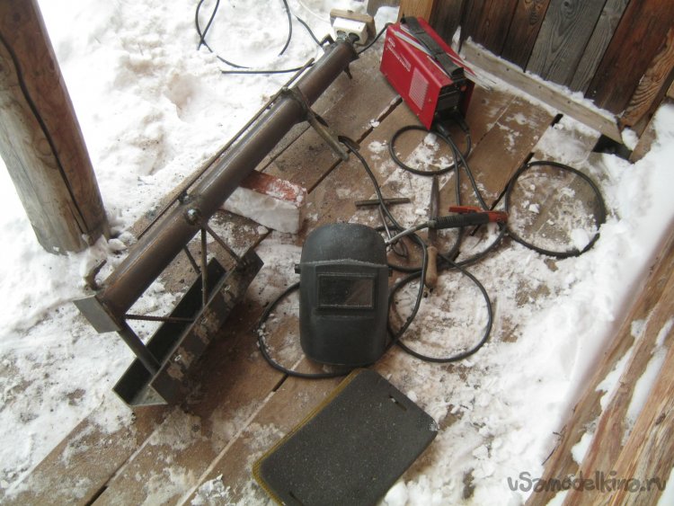 Моя отапливаемая мастерская не предназначена для пыли, дыма и копоти. Некоторое количество точных сварочных работ пришлось проводить и там, по чайной ложке, приоткрыв дверь и вооружившись хорошим вытяжным вентилятором. Для сварки основной, подбирал тихую бесснежную погоду и разгребал уголок на открытой веранде (Фото 16).